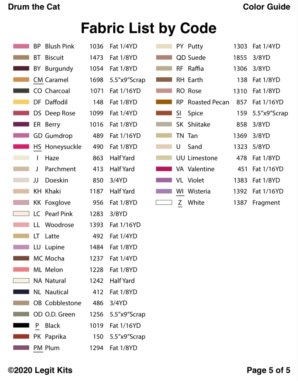 What better way to cozy up a room than with Drum the Cat. Drum is a premium design by the globally famous artist, Liam Brazier. This Legit Kits product comes with everything a foundation paper piece quilter could want.
