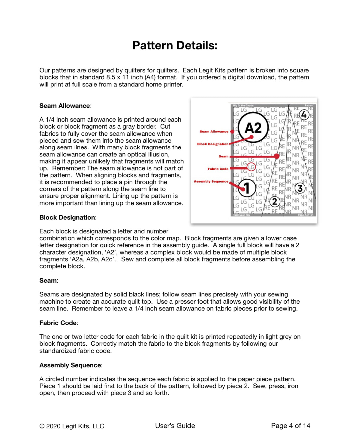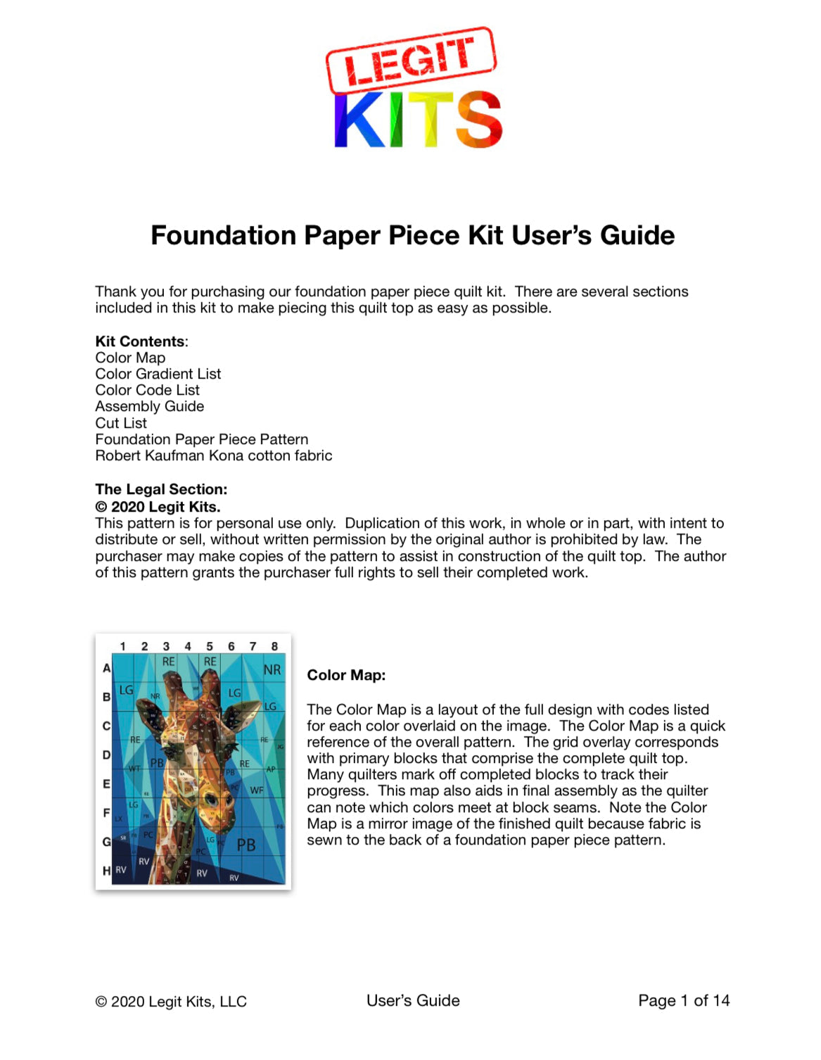 This is a quilt top kit only. Knowledge of foundation paper piecing is required to assemble this work of art. The basics of paper piecing are explained in a short photo enhanced guide included with your kit as well as further recommendations for learning this exciting technique.