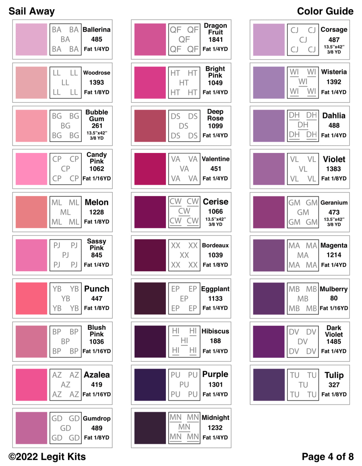 Cast off the dock lines and steady your course. Sail Away depicts a perfect cruise with vivid colors. This luxurious quilt top kit contains color maps, fabric lists, an assembly guide, the full pattern printed on foundation paper, and generous cuts of 63 clearly labeled Robert Kaufman Kona Cotton Solids to complete this full sized, 60 inch wide by 80 inch tall quilt top.