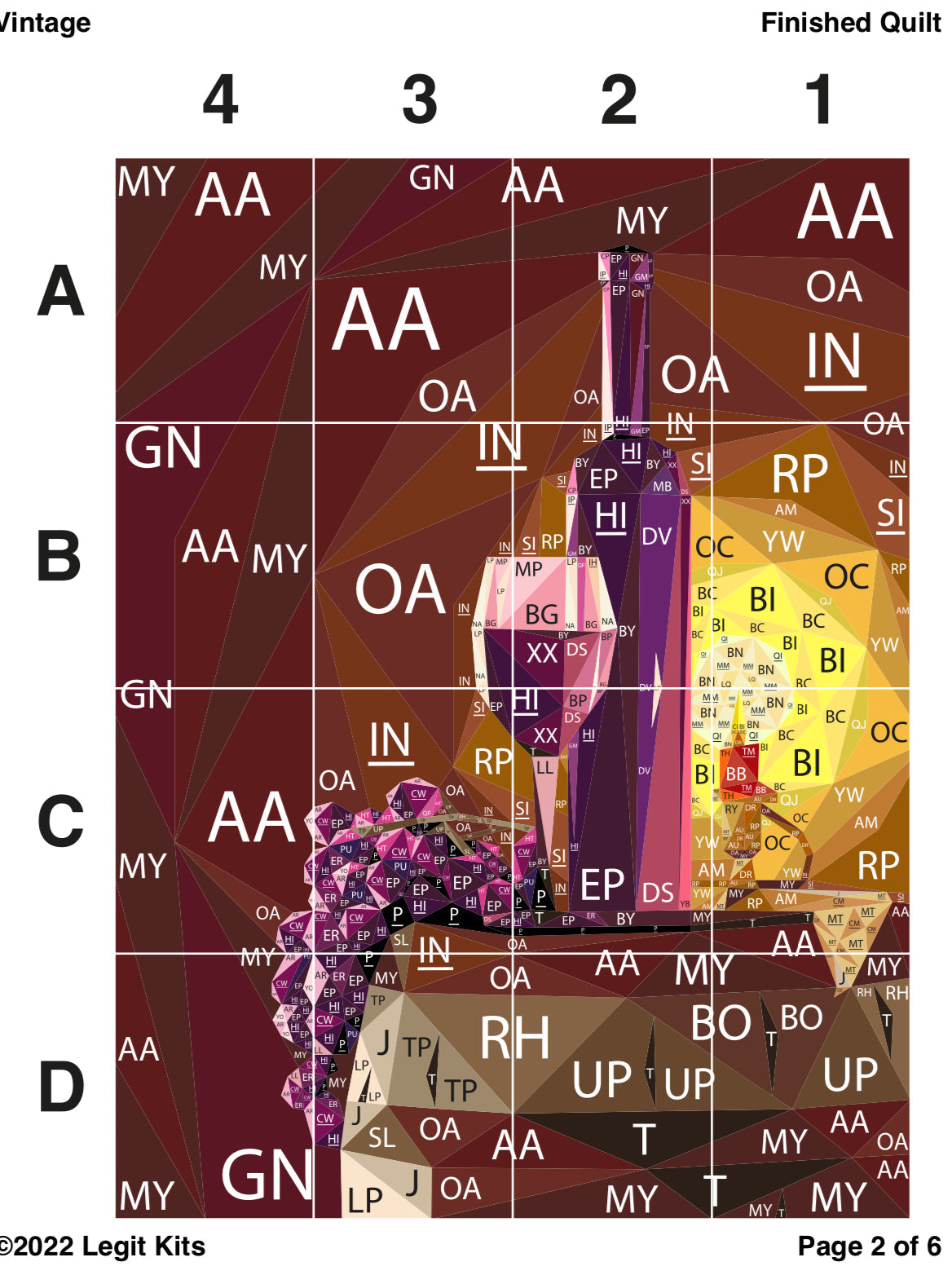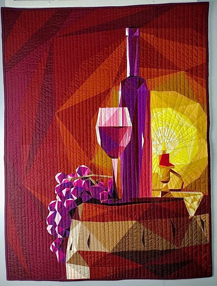 Step into the cellar and uncork the perfect bottle. Vintage is a premium design with everything a foundation paper piece quilter could want. Designed with lush purples and warm browns, this quilt top kit will make a fabulous wall hanging art piece, baby quilt, or surround this design with complimentary fabric to create a stunning full sized quilt top. This kit contains color maps, fabric lists, an assembly guide, the full pattern printed on foundation paper, and clearly labeled, ample cuts of 59 different shades of Robert Kaufman Kona Cotton Solids to complete this medium sized, 30 inch wide by 40 inch long quilt top.