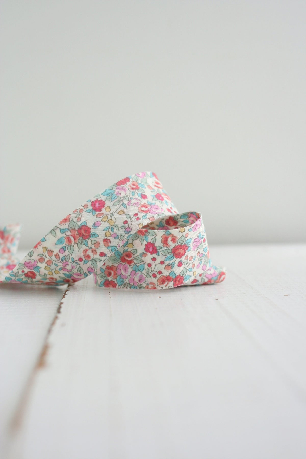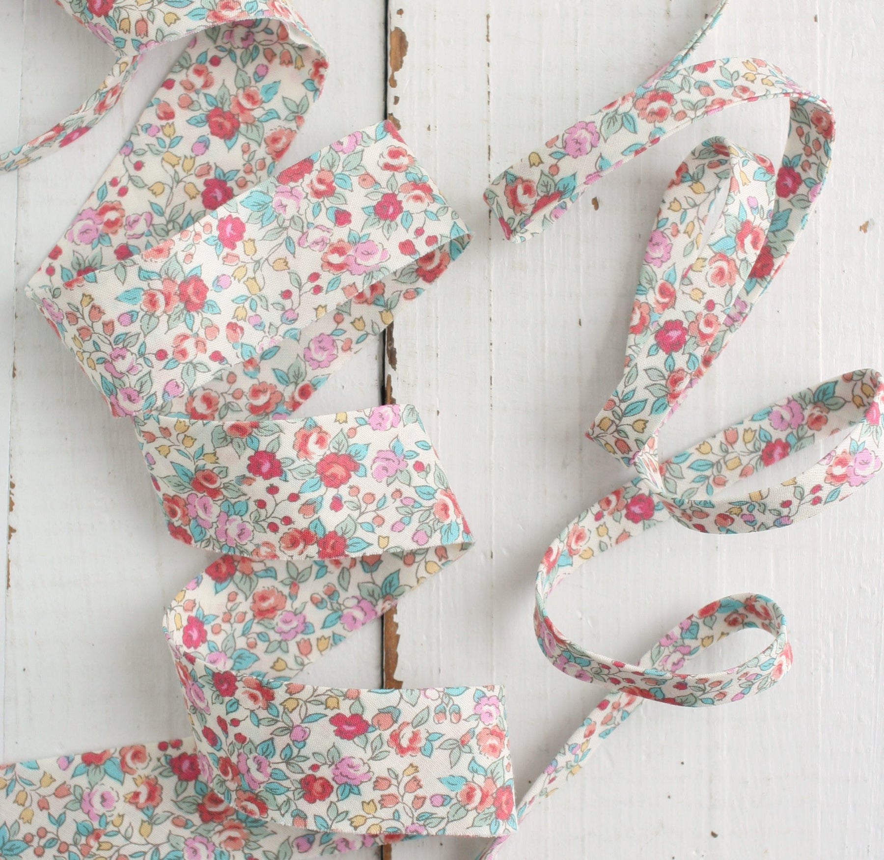 Sizing: bias tape has a finished width of 1/2". Bias quilt binding is cut at 2.5" with a finished width of 1.25". Multiple yards ordered will ship as one continuous piece.