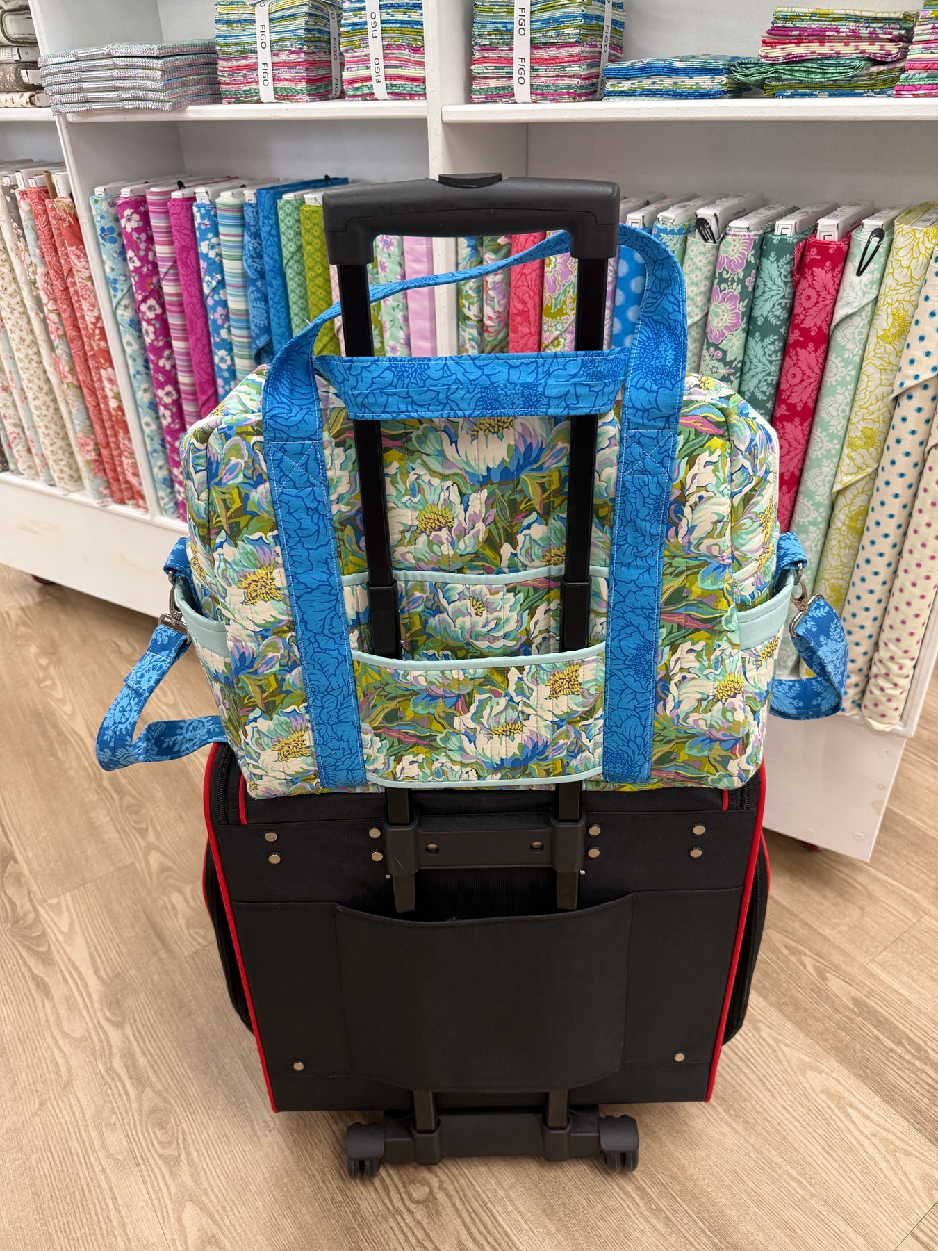 The Ultimate Travel Bag 2.0 is a great sized bag for traveling! It has a sleeve that allows it to slip over your rolling suitcase handle. You can personalize your colors to make it uniquely yours. ByAnne patterns are fun to make and easy to follow, and Lynn will teach you her tips and techniques for bag making. You will have homework between classes.