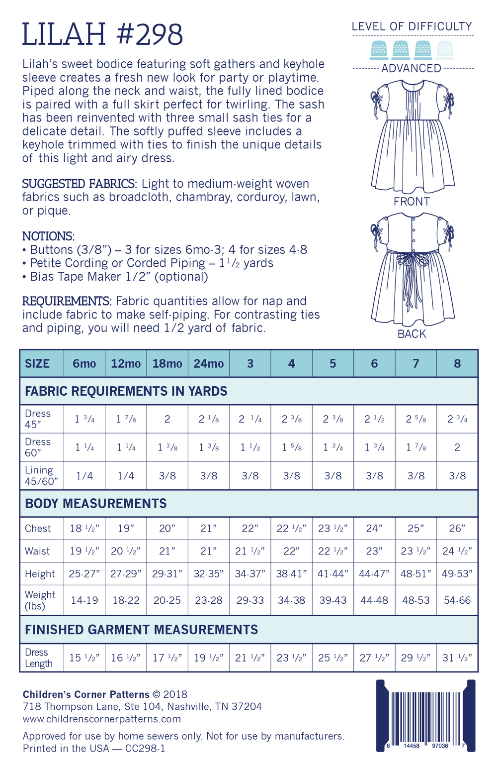 This sweet bodice dress features soft gathers and a keyhole sleeve. She will be ready for party or playtime. Piped along the neck and waist, the fully lined bodice is paired with a full skirt perfect for twirling. The sash has been reinvented with three small sash ties for a delicate detail. The softly puffed sleeve includes a keyhole trimmed with ties to finish the unique details of this light and airy dress.