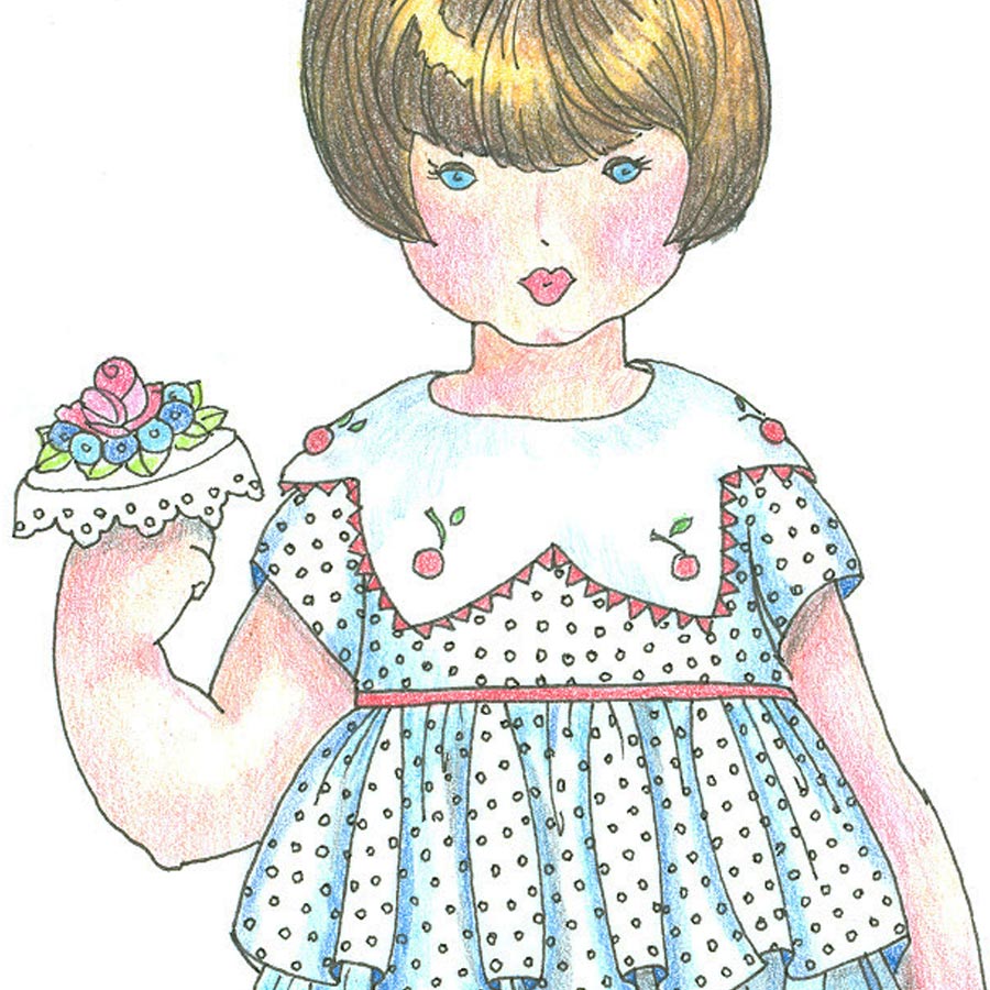 This sweet little play dress includes two versions. Choose little cap sleeves and pointed collar for a dressier look; or make it with no sleeves and no collar for a play version. Bubble panties and moppet hat are included. The A-line style dress is layered with three tiers of ruffles, which can be made up in coordinating fabric prints or in solids. Pattern includes instructions for embroidery and template also.
