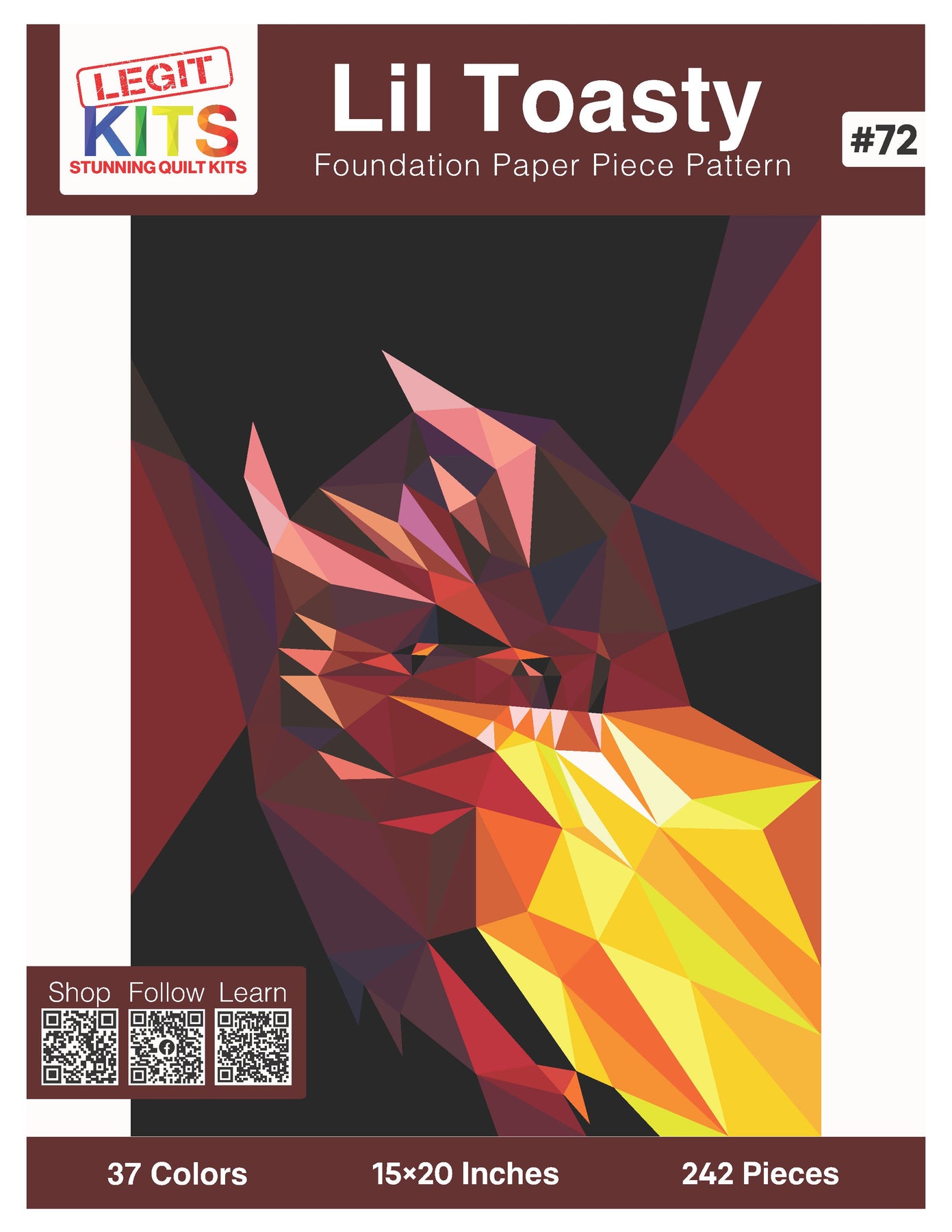 This is a quilt top kit only. Knowledge of foundation paper piecing is required to assemble this work of art. The basics of paper piecing are explained in a short photo enhanced guide included with your kit as well as further recommendations for learning this exciting technique.