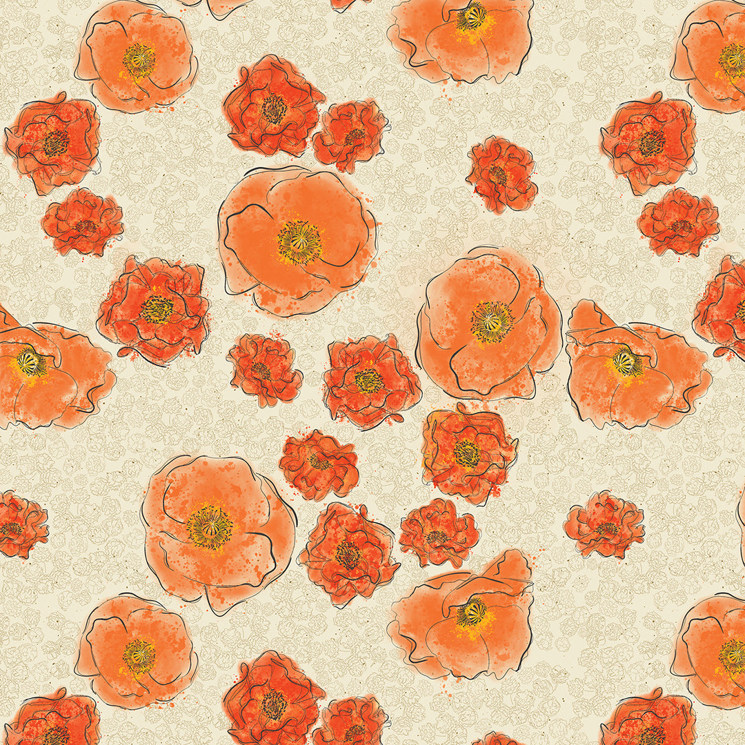 Modern Vintage - Treasured Poppies - Natural - 1659370B