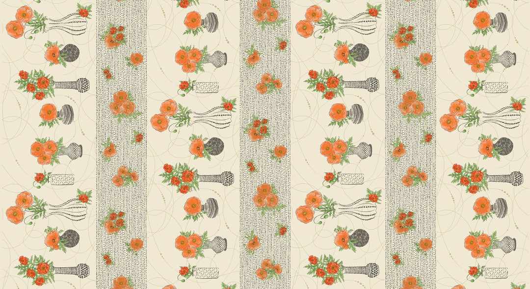Modern Vintage - Treasured Poppies - Stripe Natural - 1659470B